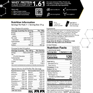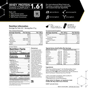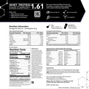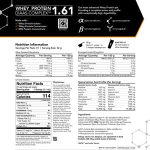 Whey Protein DIAAS Complex 1.61 leverages the Digestible Indispensable Amino Acid Score (DIAAS) scientific method for measuring protein quality to maximise bioavailability and deliver an unmatched amino acid profile. This allows you to experience faster recovery, increased muscle growth, and improved overall health and performance.